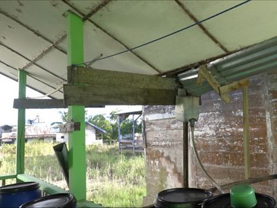 Using river water for bathing sometimes causes itchy skin. This happens when river water, usually brown, suddenly turns bright. The community suspects that this happened because of fertilizer waste from nearby plantations.