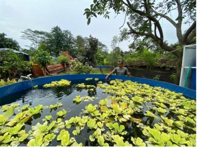 The natural farm product garden that Pak Bowo works on has goat pens for him and other farmers. Goat manure is a primary fertilizer for fruit trees such as durian, avocado, guava, mango, banana, and elephant grass that thrive on the land. The production center garden is called the stable by the local people. There are also catfish and tilapia ponds which are mediated by tarpaulin ponds—in the barn, spending time discussing various things because this is where he spends much time managing his farming businesses.