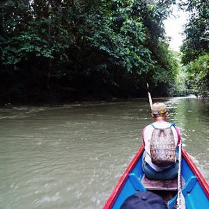 As I step off the boat onto the boardwalk, my eyes immediately catch movement in the nearby trees. Flashes of fur, long tails swaying. In the dense tropical forest, it’s difficult to get a clear view. But as I scan deeper into the brush, a face suddenly appears right before me: a monkey.