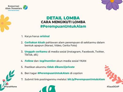 Contestants are required to fill out a form on the google form (bit.ly/PerempuanUntukAlam) and upload the link to the #PerempuanUntukAlam and #WomenForNature story that has been uploaded on social media. If all the requirements have been met, it will automatically be registered as a participant in the competition.