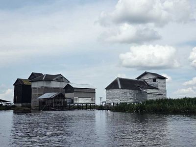 Kami tiba di Tulung Selapan tepat saat makan siang. Setelah makan dan beristirahat, kami melanjutkan perjalanan menuju Desa Sungai Lumpur. Dengan menyusuri sungai menggunakan kapal penumpang, perjalanan ini ditempuh sekitar tiga jam menuju tujuan. Sepanjang perjalanan, Saya berkesempatan melihat desa-desa sepanjang sungai dengan rumah-rumah panggung dan bangunan tinggi tempat burung walet bersarang.