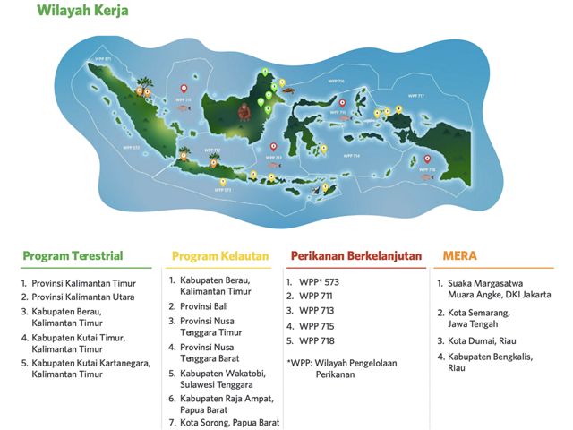 Mendorong upaya adaptasi dan strategi perubahan iklim, serta melindungi wilayah daratan dan perairan, YKAN bekerja di lebih dari 10 provinsi di Indonesia melalui Program Terestrial dan Program Kelautan.