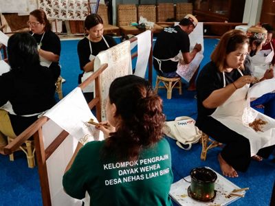 Yuliana Wetug, one of the participants, mentioned that Dayak Wehea motifs on batik could become a unique souvenir from Nehas Liah Bing Village in East Kutai Regency, where they live. Two of the eight participants were men skilled in carving wood into totems or other accessories. Paulus Yen and Philipus Tleang Helag drew the Dayak Wehea carving motifs and then turned them into master prints on batik fabric the size of a scarf.